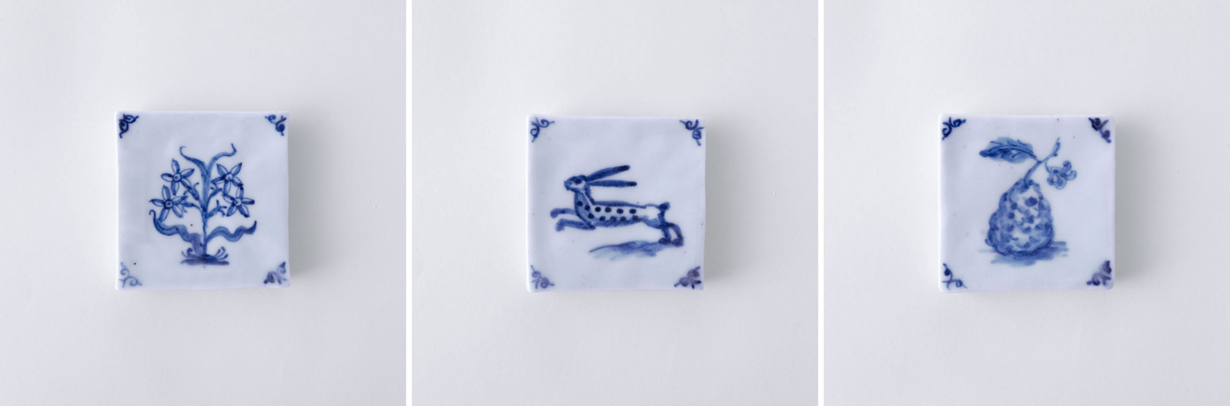 Hand-painted cobalt designs feature elegant birds, flora, and fauna, blending European ceramic tradition with equatorial themes. Each tile’s delicate brushwork and soft glaze evoke timeless craftsmanship and serene balance between heritage artistry and natural inspiration.